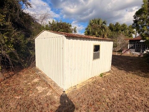 - Shed in the rear of home conveys (covers water filtration system. On a concrete slab)