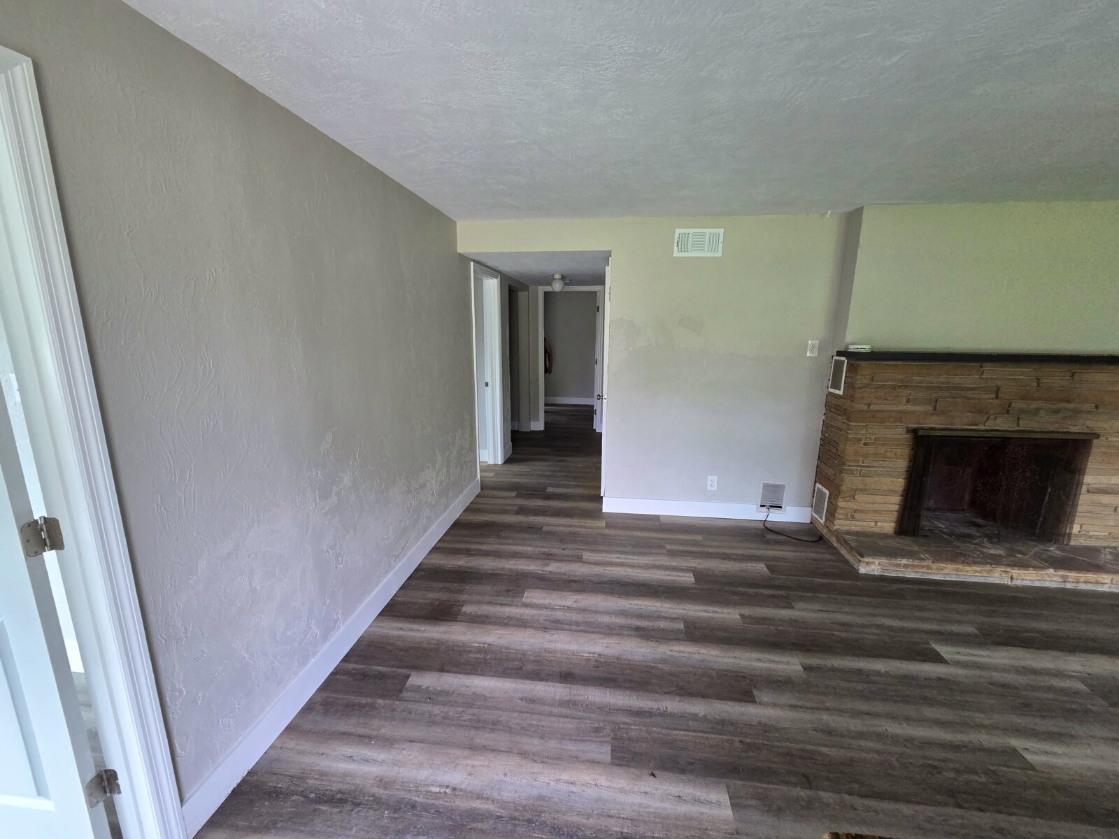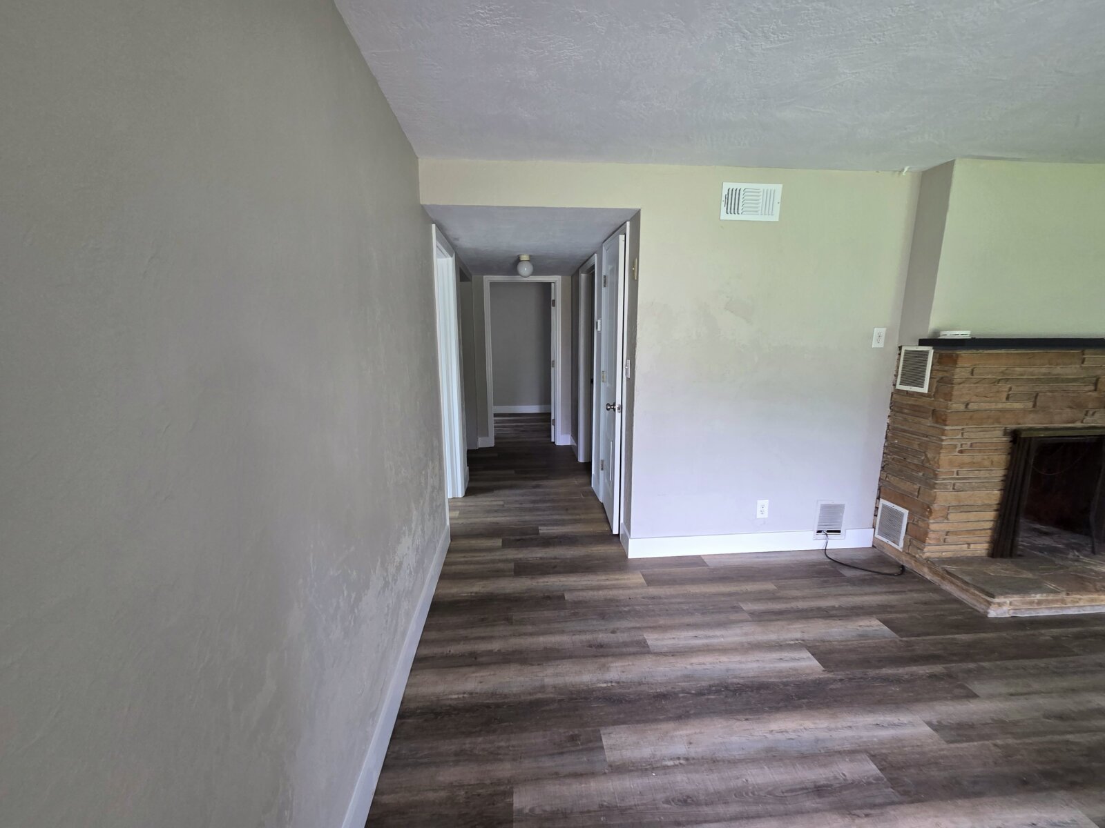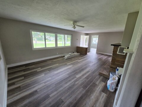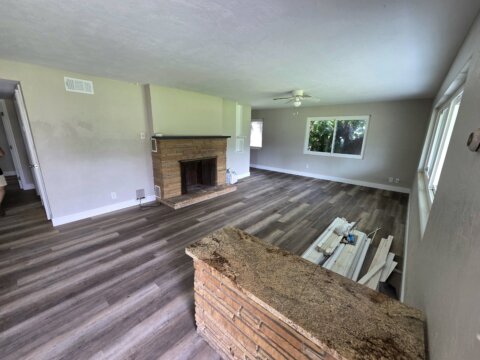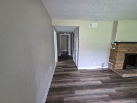 The home has a fireplace, new flooring, and an AC/HVAC unit that was serviced to be like new.
